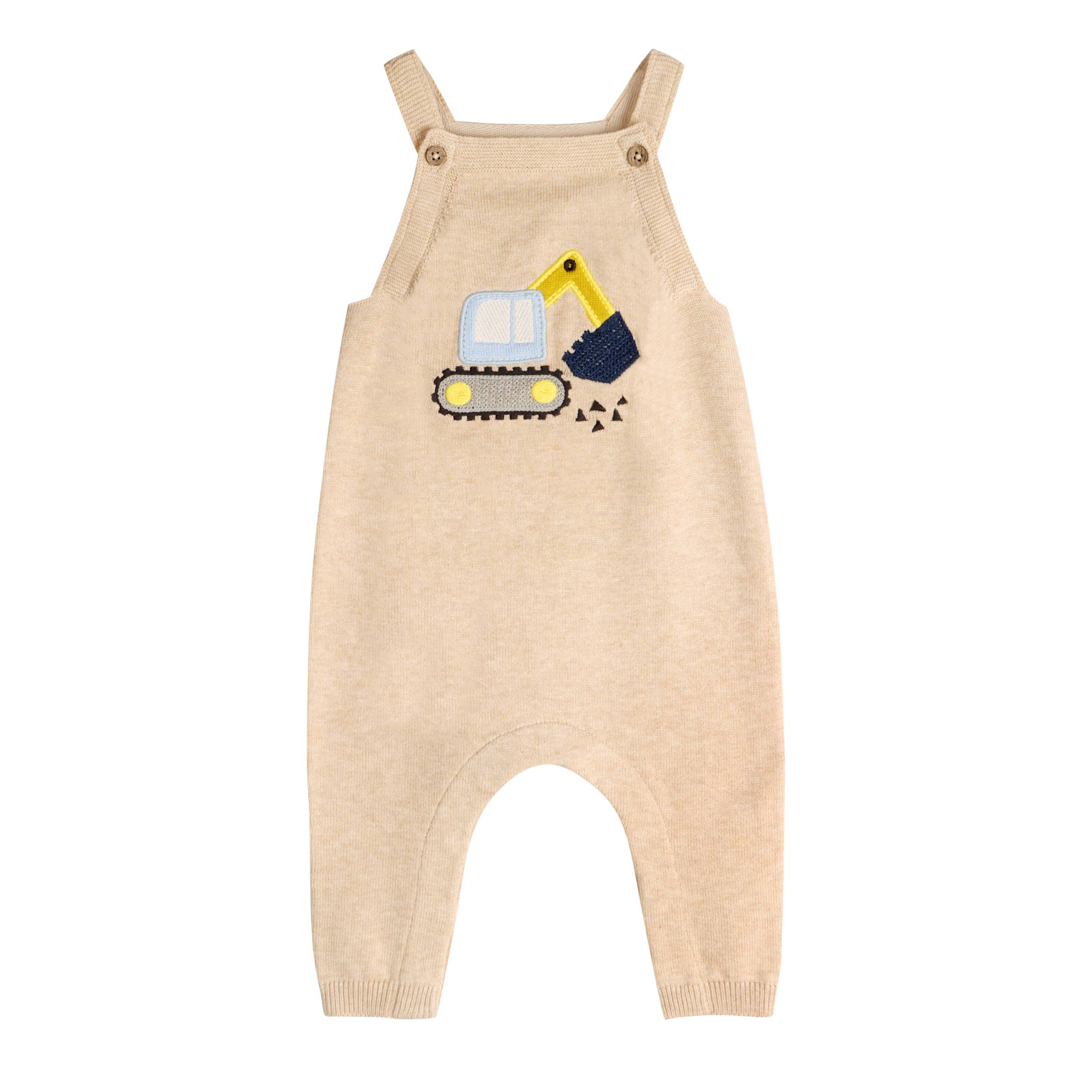 100% organic cotton sweater knit baby overall with long sleeve bodysuit as a set, ultra-soft hand feel. -Adjustable button shoulder straps for the perfect fit, Snap buttons at the crotch for easy diaper changes, & multicolor embroidered Mini Excavator Truck. - All-season, lightweight, and breathable organic cotton, comfy and cozy. - Eco-friendly, chemical-free, non-toxic, pure, natural & organic baby clothes. - Ethically produced in India, supporting better livelihoods for small grower farmers.