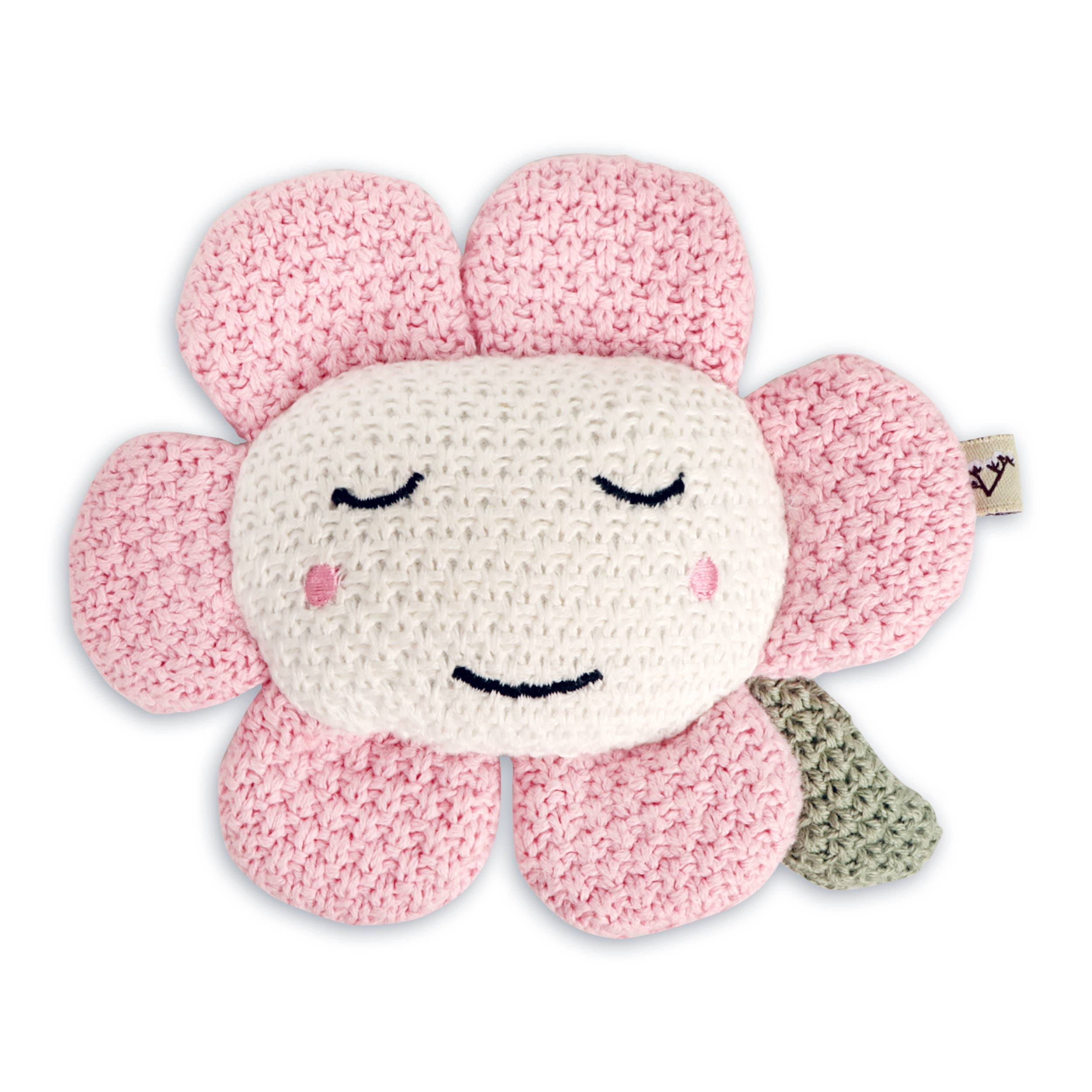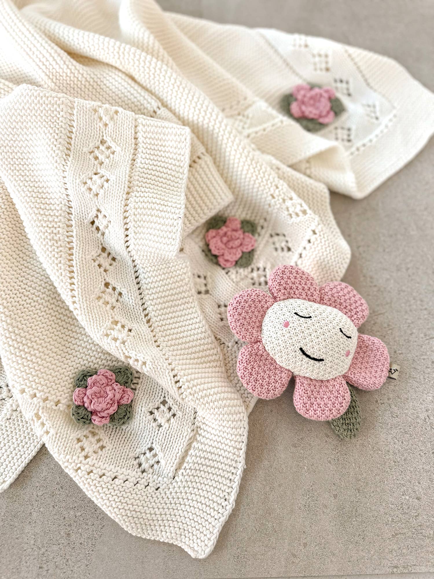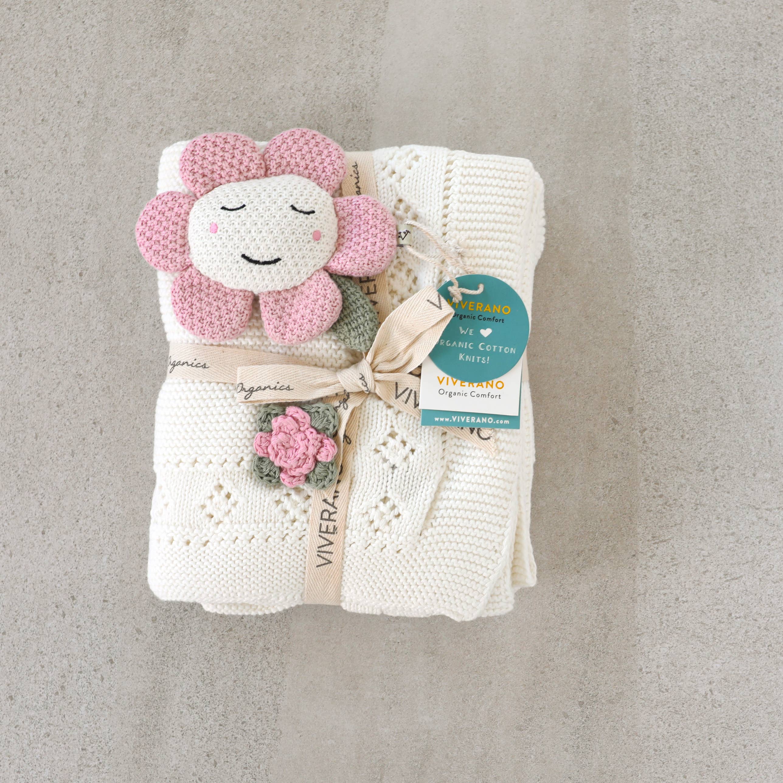 Viverano Flower Pointelle Knit Blanket & Flower Rattle Gift Set