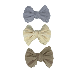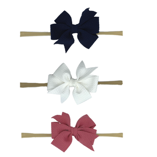 The pack also comes with a nylon stretchy headband so the bows can be attached to the soft headband for newborns/babies with no hair yet!