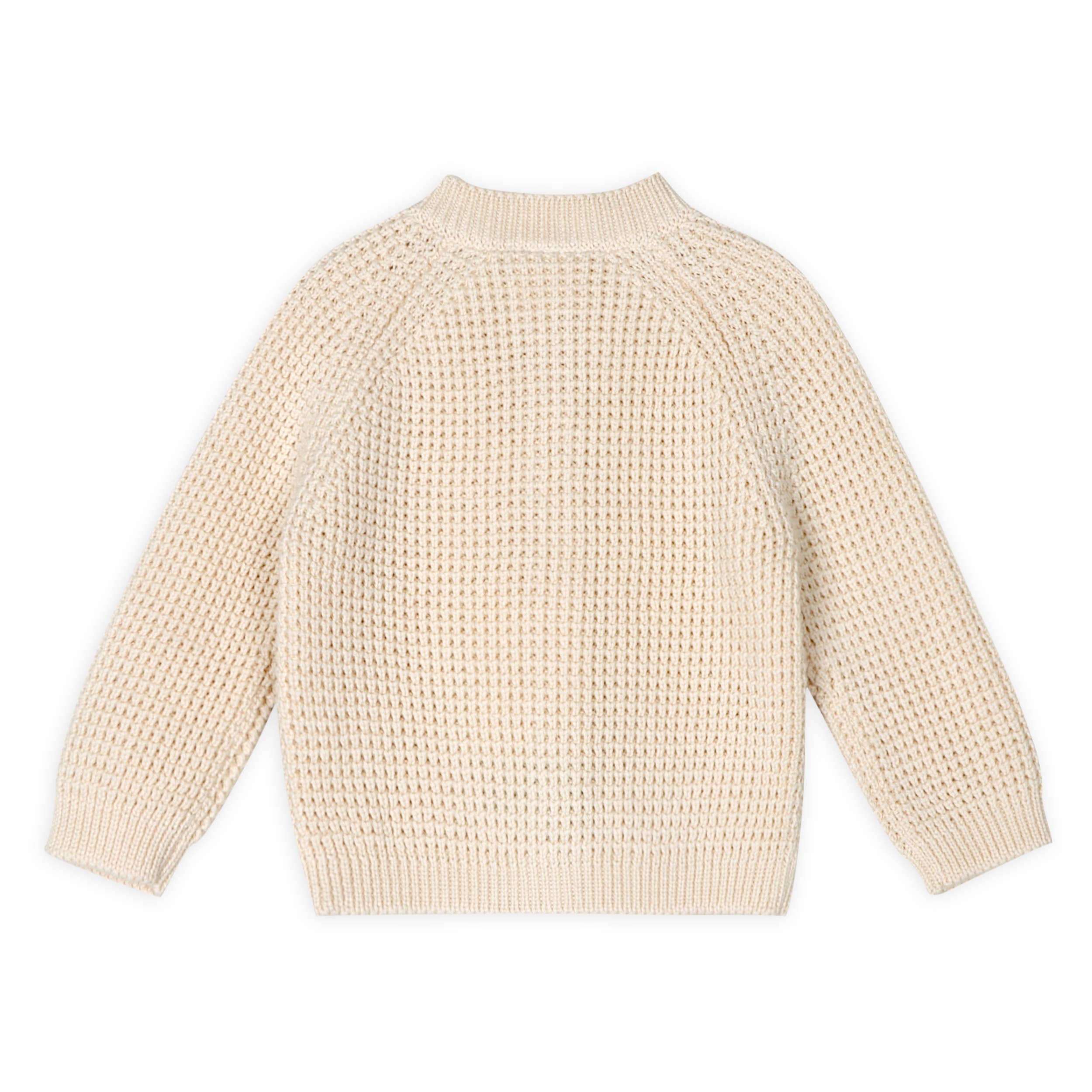 The knit design of the sweater provides a gentle stretch, allowing for a snug fit that moves with your baby's every motion. Free from harmful chemicals, dyes, and synthetic fabrics, our organic baby clothing is ideal for sensitive skin, giving parents peace of mind while prioritizing sustainability.