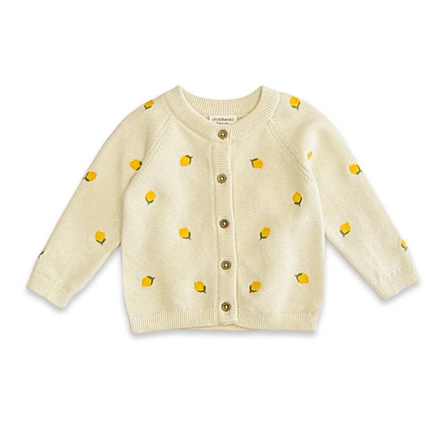 100% organic cotton sweater knit and embroidered baby cardigan, ultra-soft hand feel.