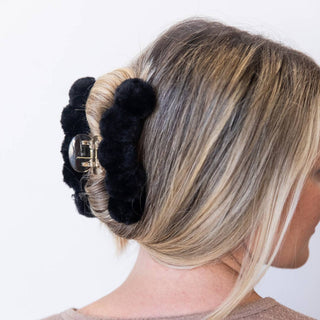 This Fuzzy Claw Clip - Black is the perfect accessory to keep your hair in place. The fuzzy material provides a secure grip and the large size holds a lot of hair without sacrificing any comfort. Wear it all day without any discomfort.