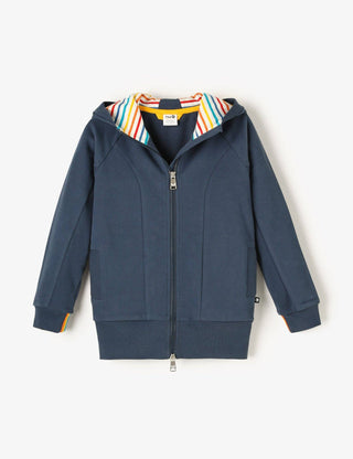 Your favorite hoodie, elongated and elevated. Wear it again and again, and again for an off-duty look and a layer of coziness. Made from soft GOTS certified 100% organic cotton with a hood lining and cuffs featuring our signature knitted bright stripes for positive vibes and a splash of color.