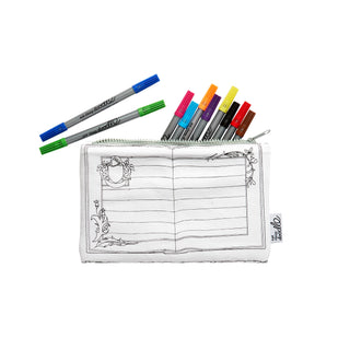 Complete with a set of 10 wash-out felt tip pens – simply pop the pencil case in the machine, the ink washes clean, and it’s ready for a new coloring journey.