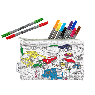 Learn about things that go as you color our fun color in washable pencil case with diggers, buses, sports cars and more!