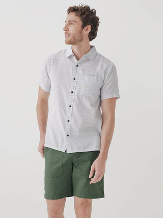 Out-of-office is officially on. We upgraded your favorite summer shirt with a lightweight gauze fabric so you can keep the good vibes going all season long. Woven, breathable organic cotton. Collar neck, full button front. Plant-based corozo buttons. Short sleeves. Chest pocket on the left. Standard fit, straight hem. We recommend ordering your true size. Length, Size M: 28.75". Sleeve Length, Size M: 9". GOTS Organic Certified. Machine wash cold. Tumble dry low.