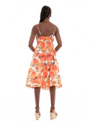 Strappy adjustable tie floral dress with v-neck. This product is made with recycled polyester. Recycled polyester saves natural resources and reduces the amount of waste.
