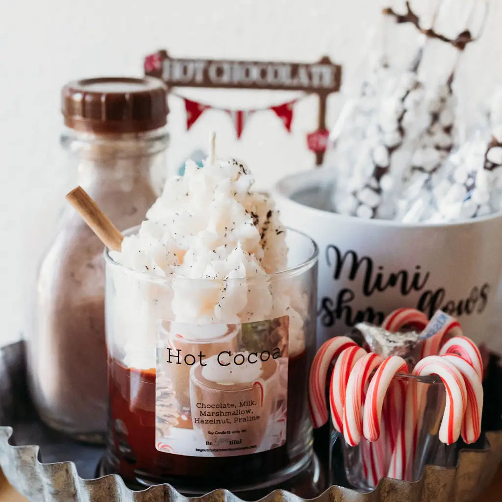 Hot Cocoa: This candle smells like a delicious cup of hot cocoa on a cold winter day! A cozy, comforting fragrance of fresh creamy steamed milk, hot sweet chocolate and mini marshmallows.