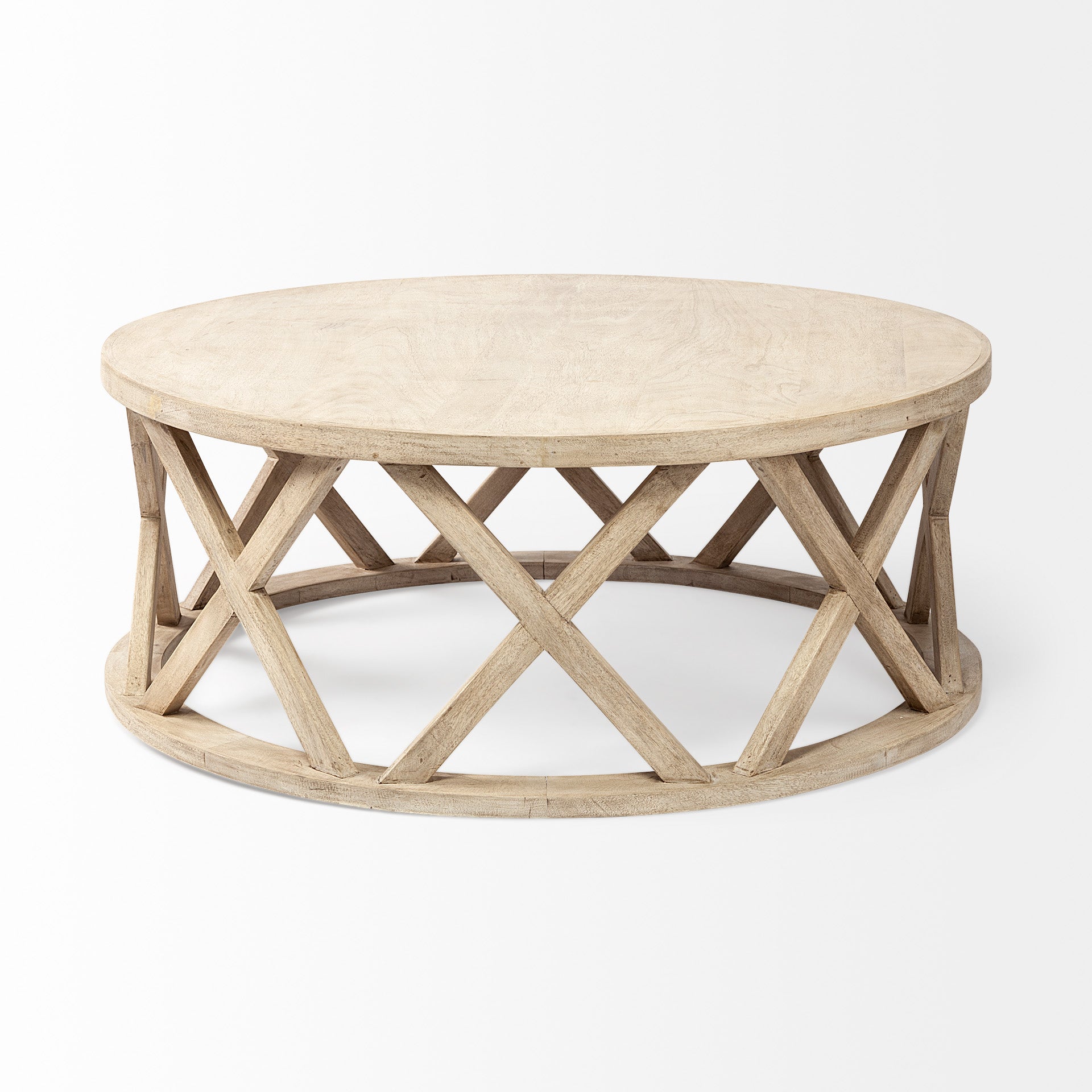 Beautifully simplistic in its design, this coastal-inspired, blonde-colored coffee table is crafted out of solid mango wood with an eye-catching lattice pattern.