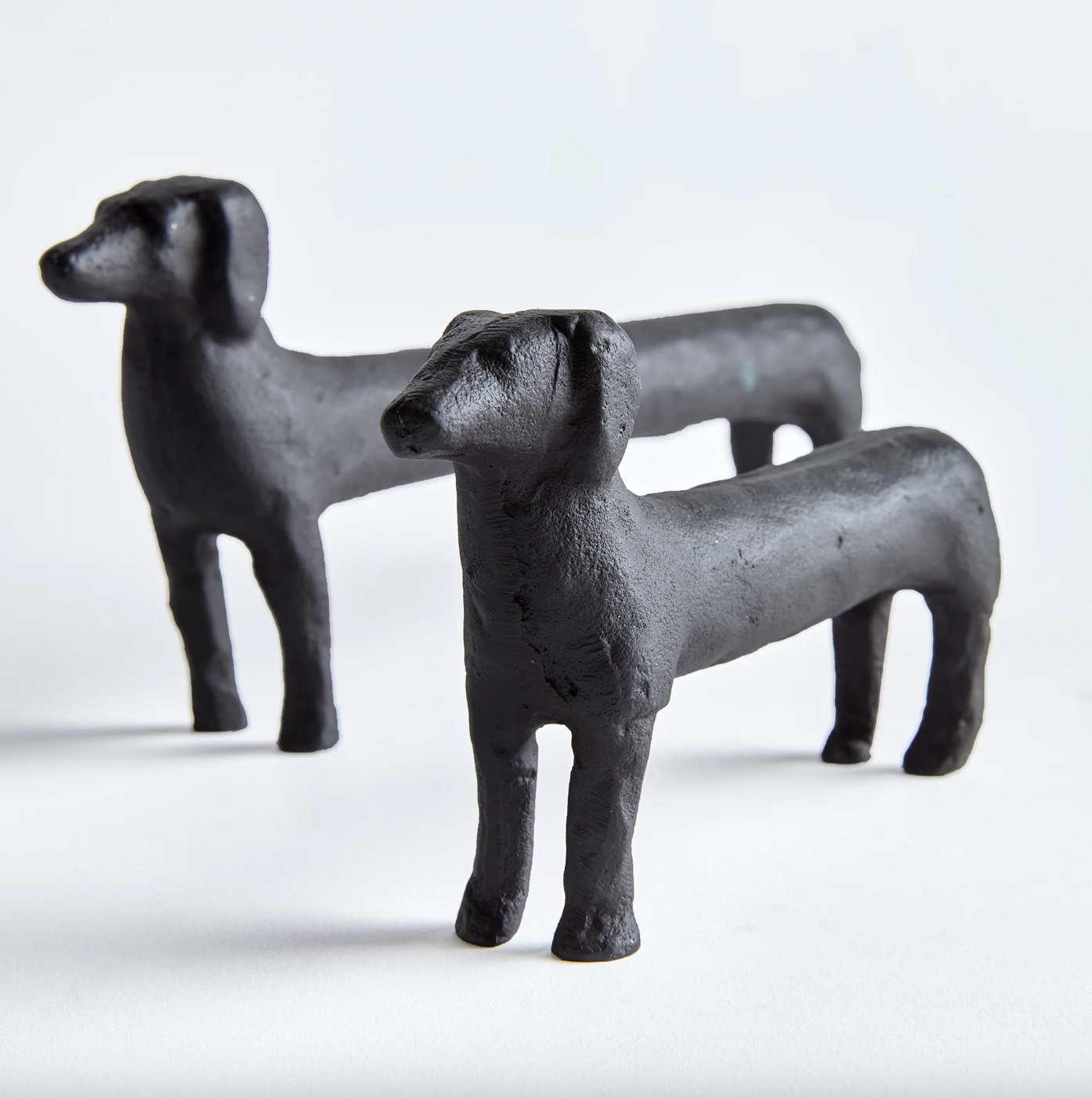 Made of a heavy cast aluminum, this set of regal dachshund sculptures are worthy of a prime bookshelf spot. With abstract, exaggerated features, a darling addition to side table or ottoman.