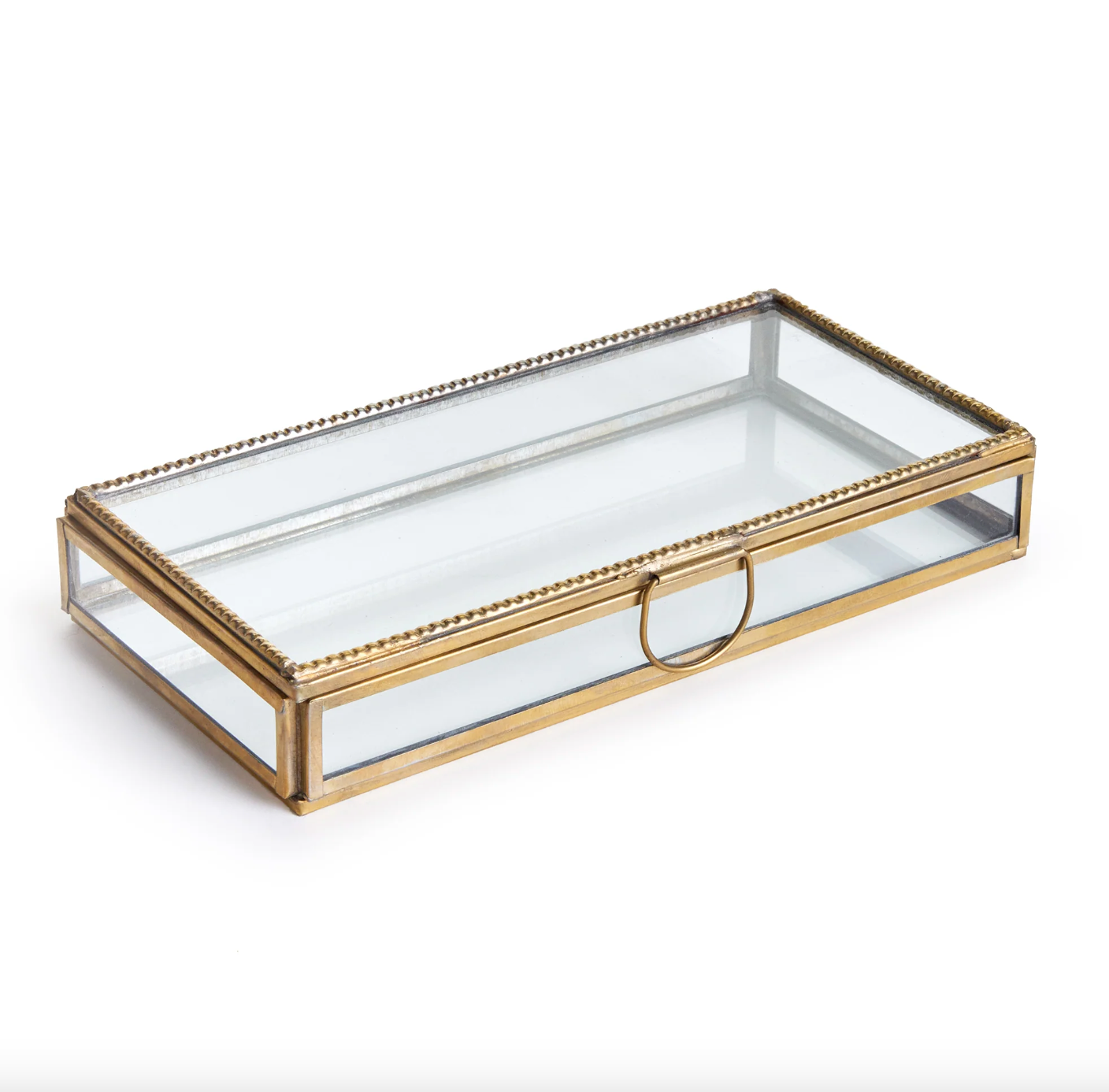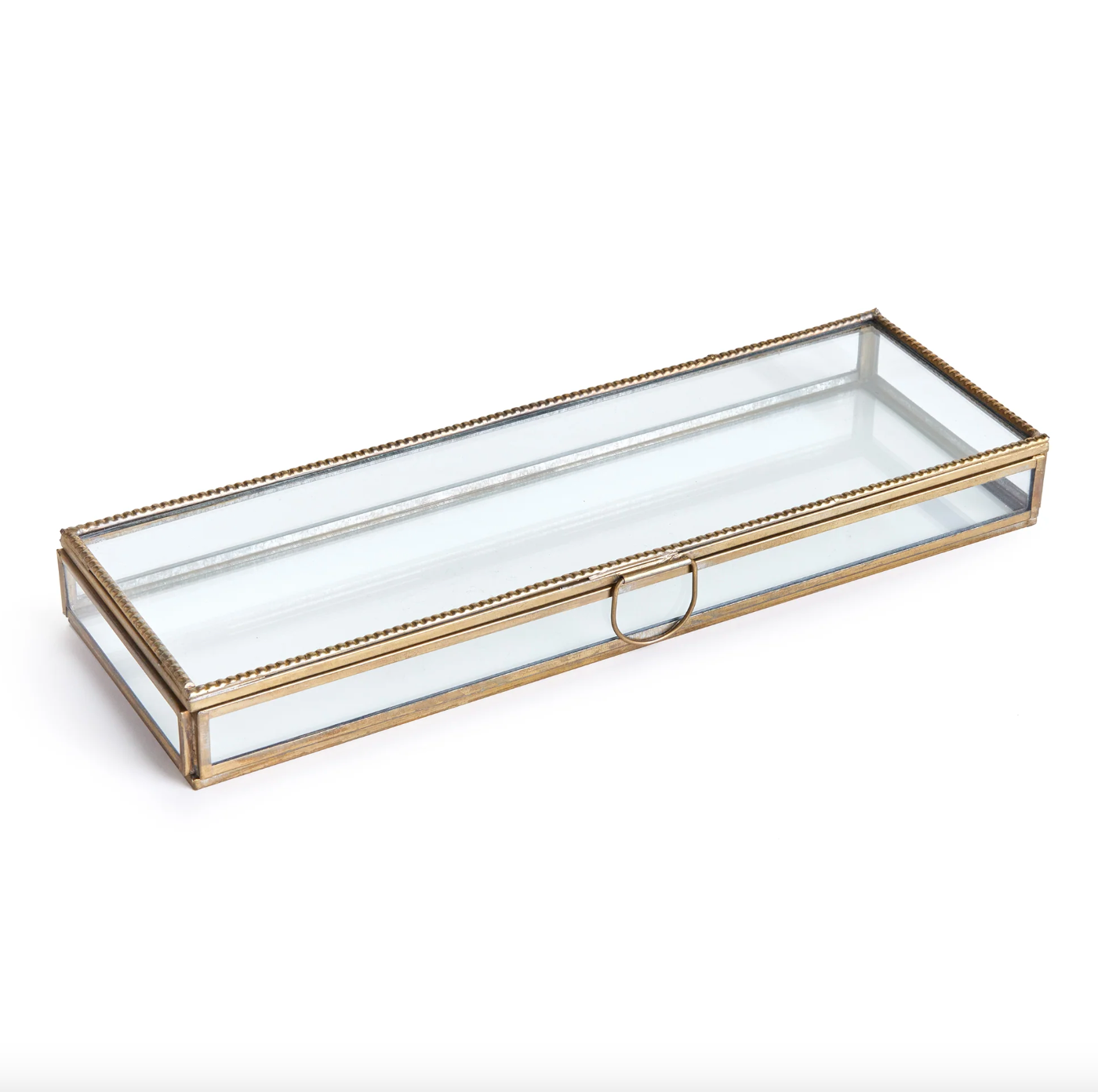 Simple and tailored with a beading detail, this glass and brass box is made to hold your most treasured mementos. A delicate loop handle keeps fingerprints off the glass