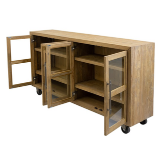 Crafted from high-quality teak wood, this sideboard features a warm and inviting color and a distinctive wood grain pattern that adds to its unique character. is designed with soft close doors, adding to its practicality and convenience.
