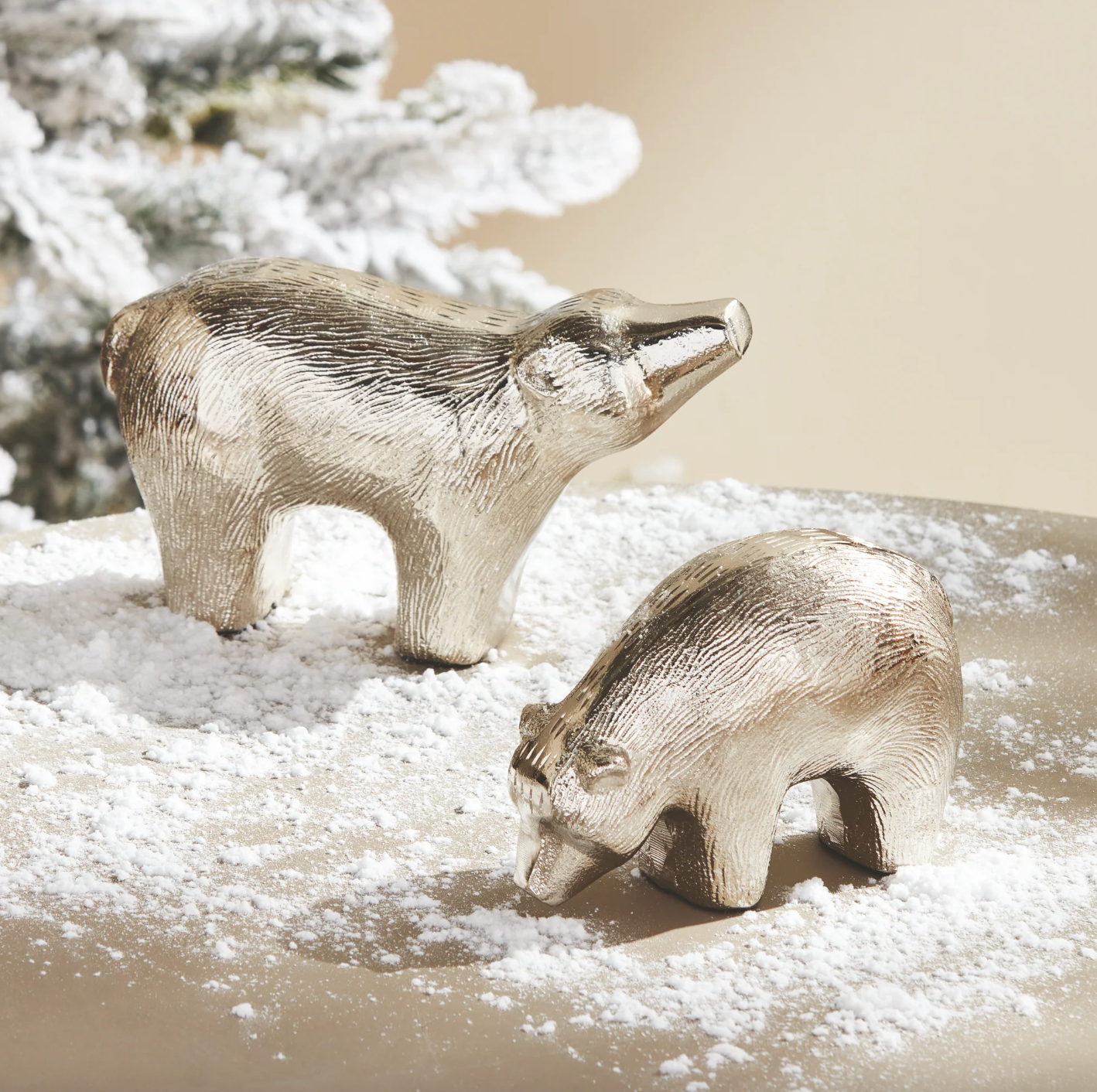 The little one explores, as the momma looks on, these modern polar bear sculptures really bring the charm. Sand-casted by hand, they make adorable book ends, paper weights or simply tuck into a bookshelf for added charm.