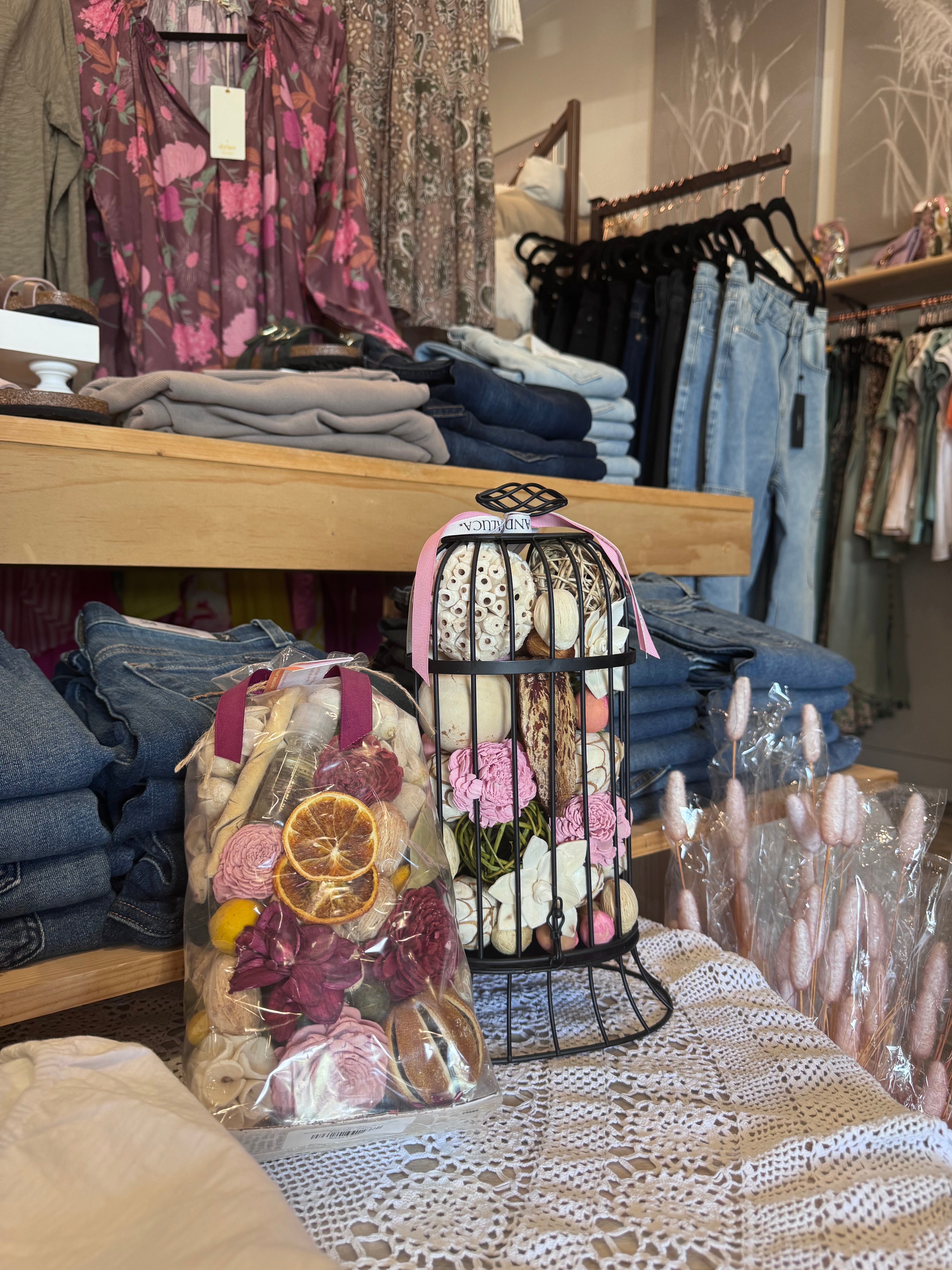 Filled with gorgeously scented botanical potpourri, this decorative garden urn is the perfect addition to your space! Perfect as a centerpiece, or on a shelf or mantel. Scented with elegant Peony & Oak fragrance.