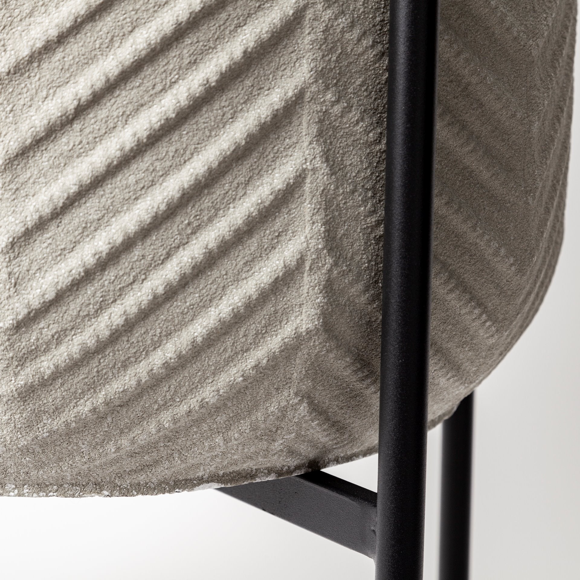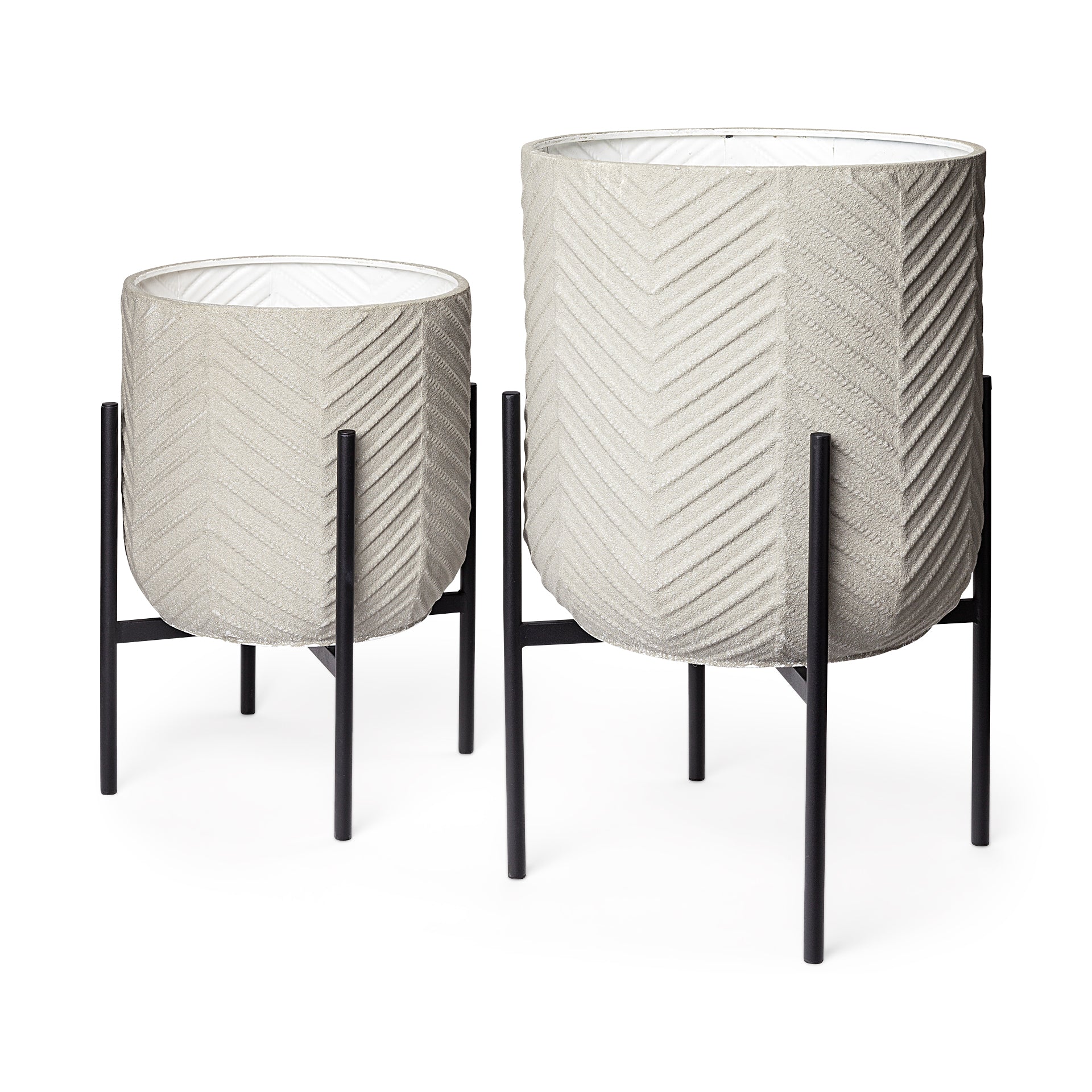 The Mabel is a set of two stunning metal plant holders finished in a light gray tone.