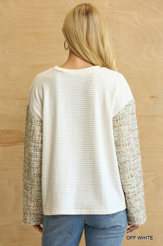 Claire Tweed And Chiffon Peplum Top With Back Key hole