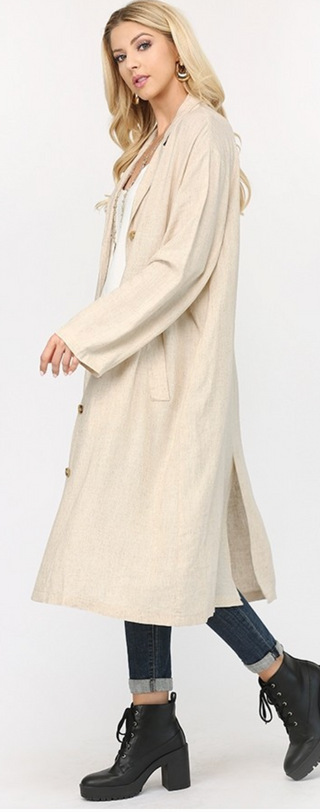 Alice Linen Long Sleeve Button Down Jacket with Side Pockets