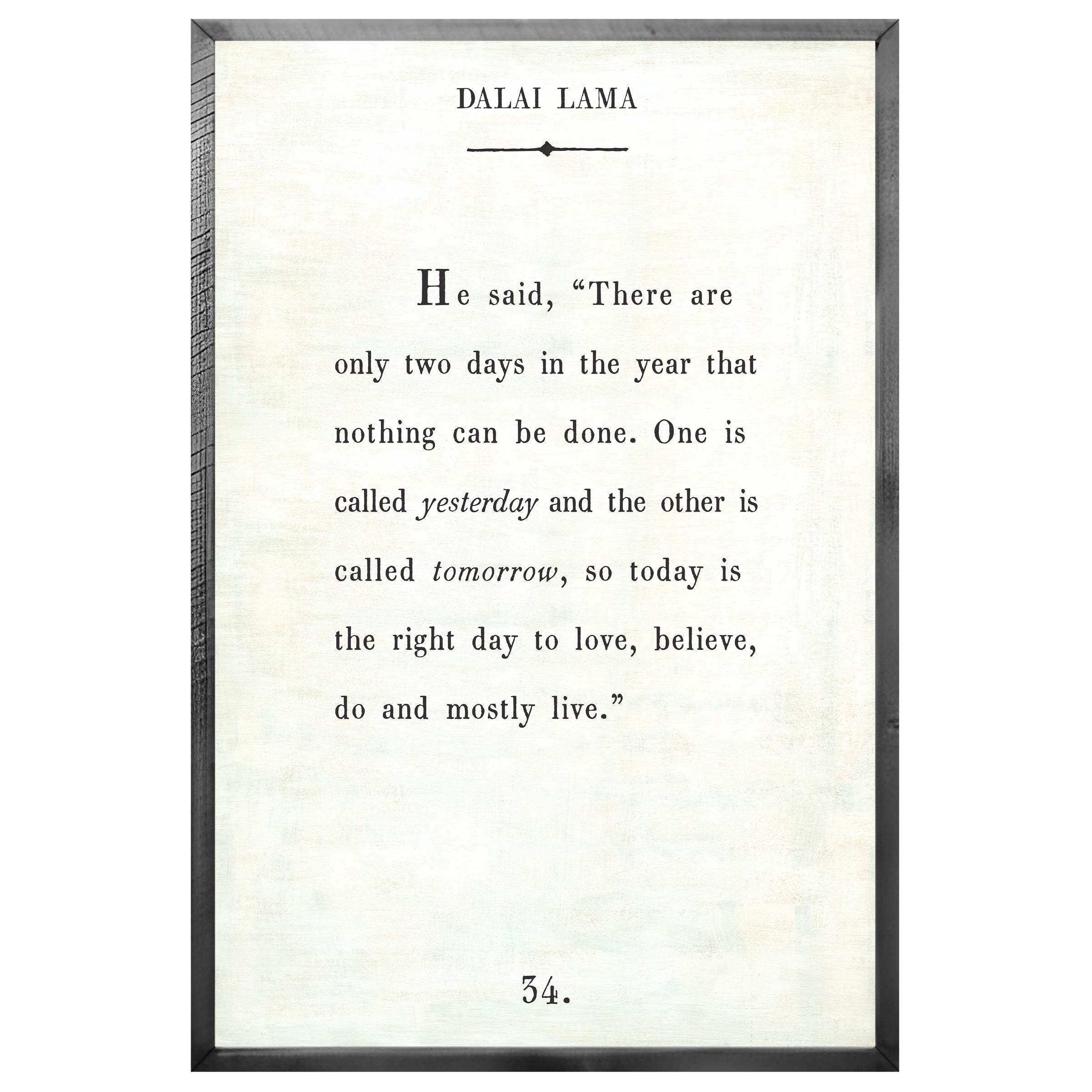 "He said, 'There are only two days in the year that nothing can be done. One is called yesterday and the other is called tomorrow, so today is the right day to love, believe, do and mostly live."