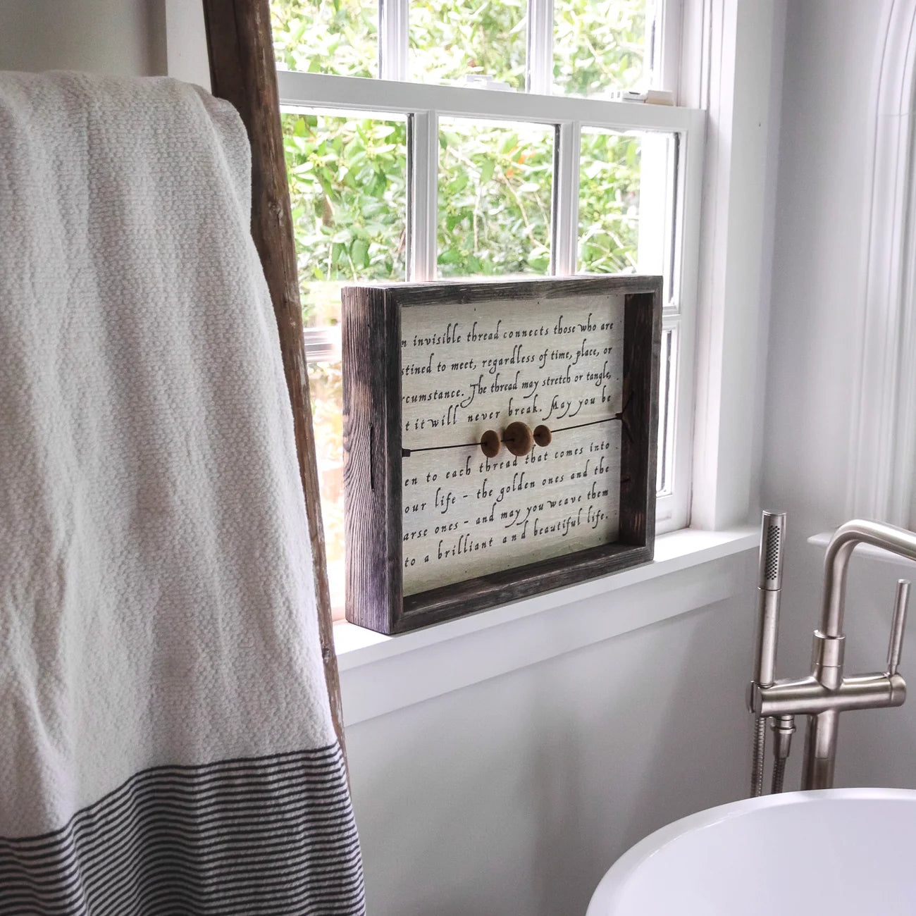 An Invisible Thread by Laura Schroff was based on a famous Chinese Proverb. When displayed in your home, its classic message will remind you and your family that certain people are bound together by an unbreakable thread. As such, a thread with wooden beads goes through the middle of the print. In its entirety it reads: