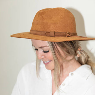 Add a classy touch to your wardrobe with this stylish Faux Suede Hat. Chic and comfortable, it features a wide brim that adds a sophisticated twist to any outfit. For added versatility, it comes with a removable band that allows you to switch up your look. Plus, its impressive quality and great price make it an unbeatable choice!