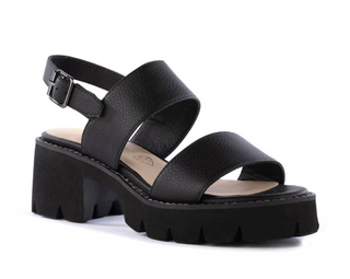 Turn heads and leave them speechless in these retro-inspired two band platform sandals. Featuring a comfortable slingback strap with buckle closure, cushy padded insoles, and a lightweight foam construction, they're as fun to wear as they feel.