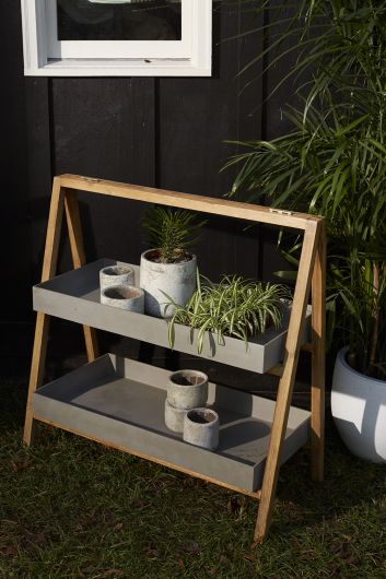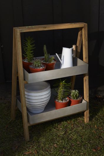 The Botany Bar features lightweight sandstone shelf and acacia wood frame, making it the perfect patio piece for urban gardens, or for a statement at your next event.