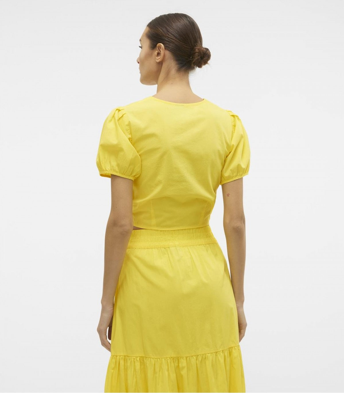 Vero Moda's women's top helps to combine different clothing items into a stylish whole. The crop top features a V-neckline and short puff sleeves for added feminine appeal. Made from organic cotton grown without harmful chemicals, helping to conserve natural resources and protect biodiversity.