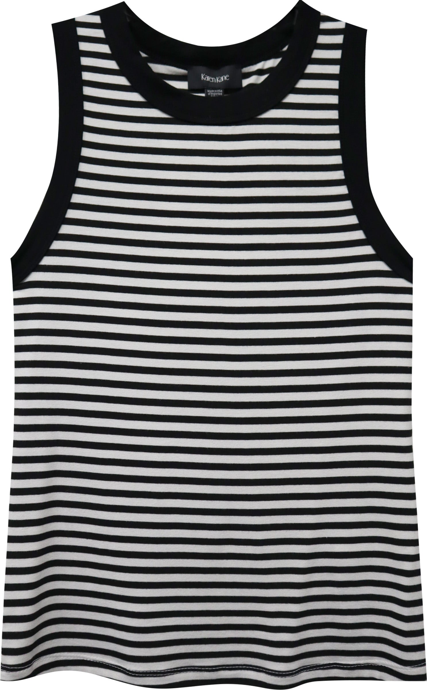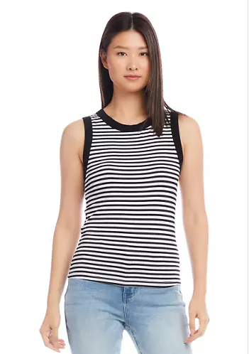 Elevate your look with the subtle charm of small contrasting stripes. This design detail adds a touch of visual interest, making this tank from Karen Kane a staple in your wardrobe. Stretchy fabric ensures all-day comfort.