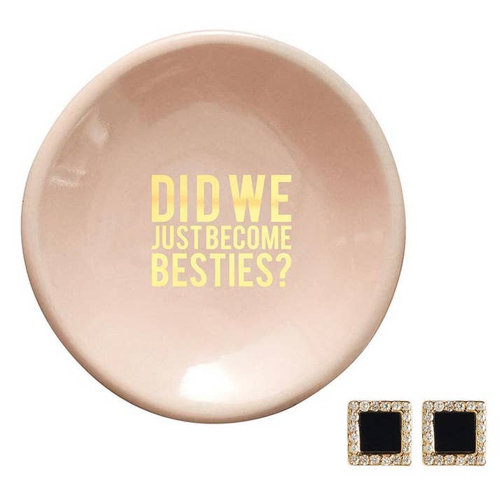Display your rings and earrings in style with our ring dishes. Hand-made ceramic bowls provide a safe place to store your jewelry. Each dish also comes pre-packaged with a set of earrings wrapped around it and a special sentiment to make these the perfect gift.