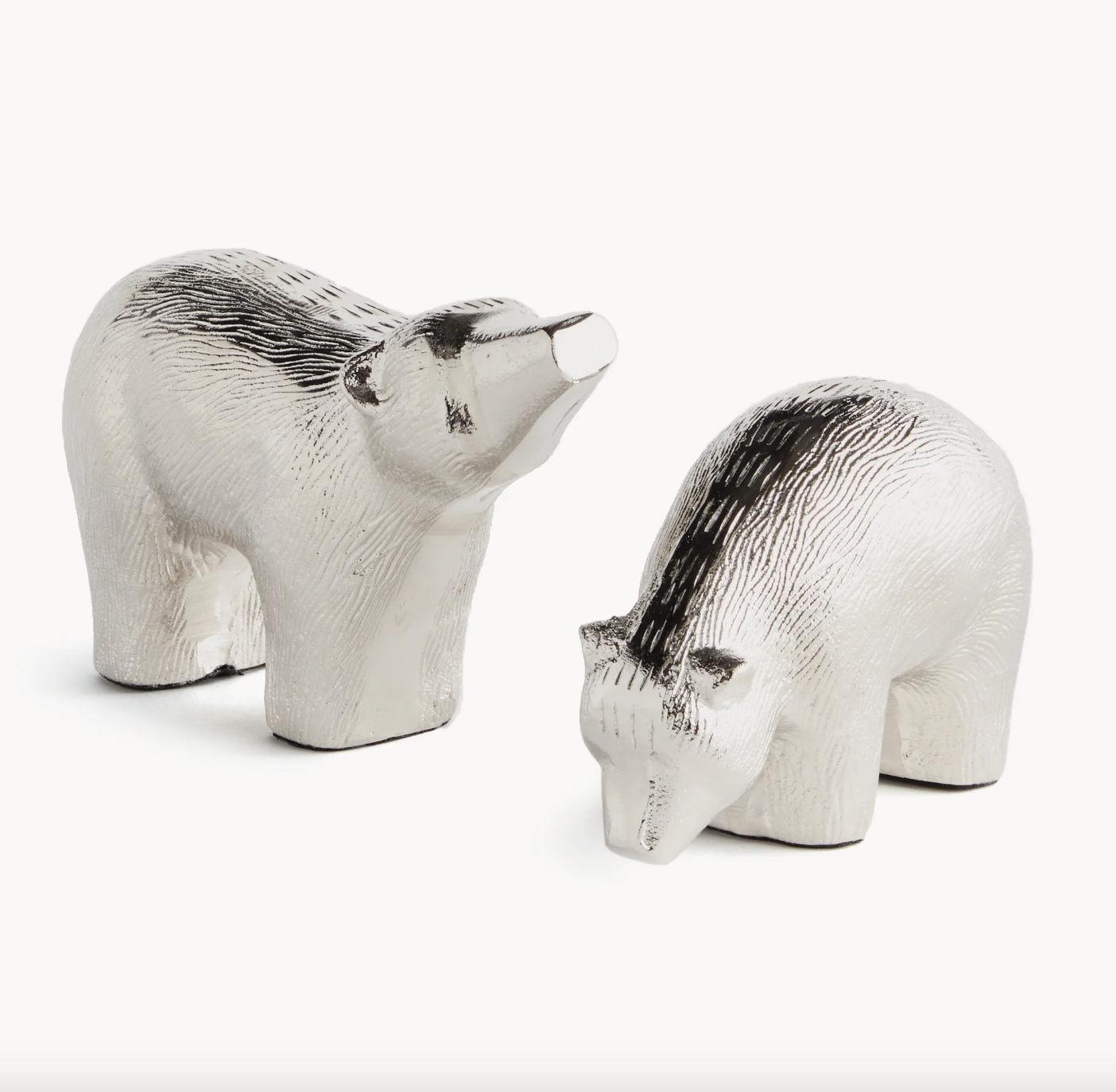 The little one explores, as the momma looks on, these modern polar bear sculptures really bring the charm. Sand-casted by hand, they make adorable book ends, paper weights or simply tuck into a bookshelf for added charm.
