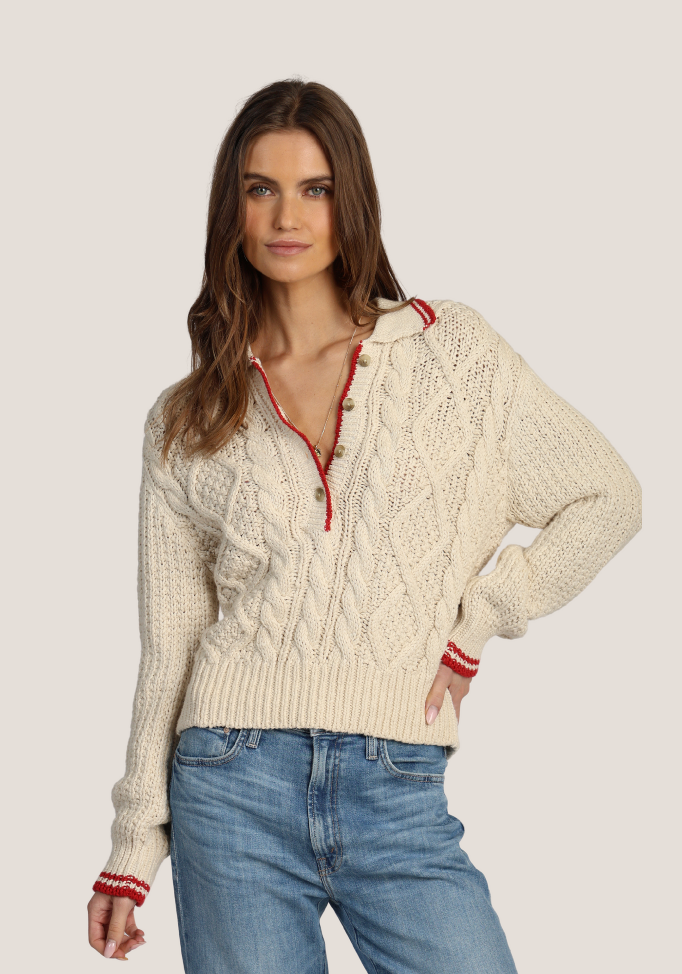 Wrap yourself in cozy charm with the Dylan Charolette Cable Knit Sweater. Made from 100% soft cotton, this preppy essential keeps you warm and stylish through chilly fall and winter days. Its classic cable knit design adds a touch of timeless flair, perfect for layering or wearing solo. Embrace the season with comfort and a playful nod to preppy cool.