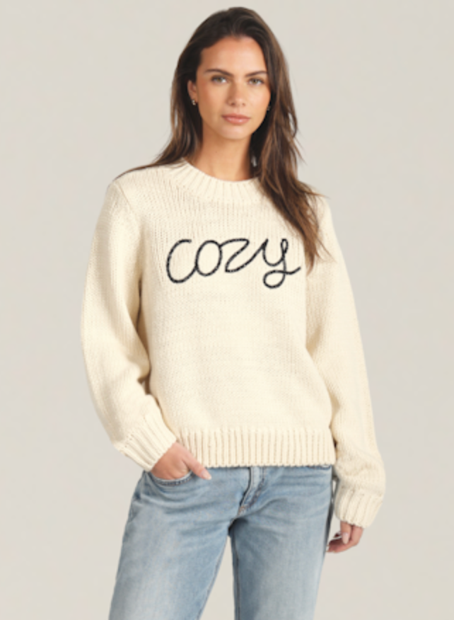 Wrap yourself in the Dylan Jenny Cozy Sweater, a perfect blend of Classy and Loungewear. Charming embroidered "Cozy". Ideal for lounging at home or gearing up for a winter ski adventure, this sweater brings warmth and style together effortlessly. Stay comfy while adding a touch of playful flair to your cold-weather wardrobe.