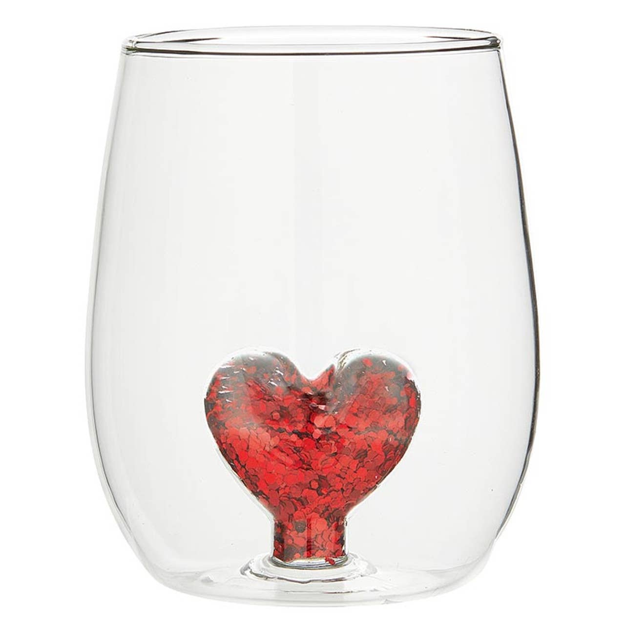 Elevate your Valentine's Day toast with our Stemless Wine Glass featuring a 3D heart figurine and red glitter inside. Add romantic charm to your celebrations with this unique glassware