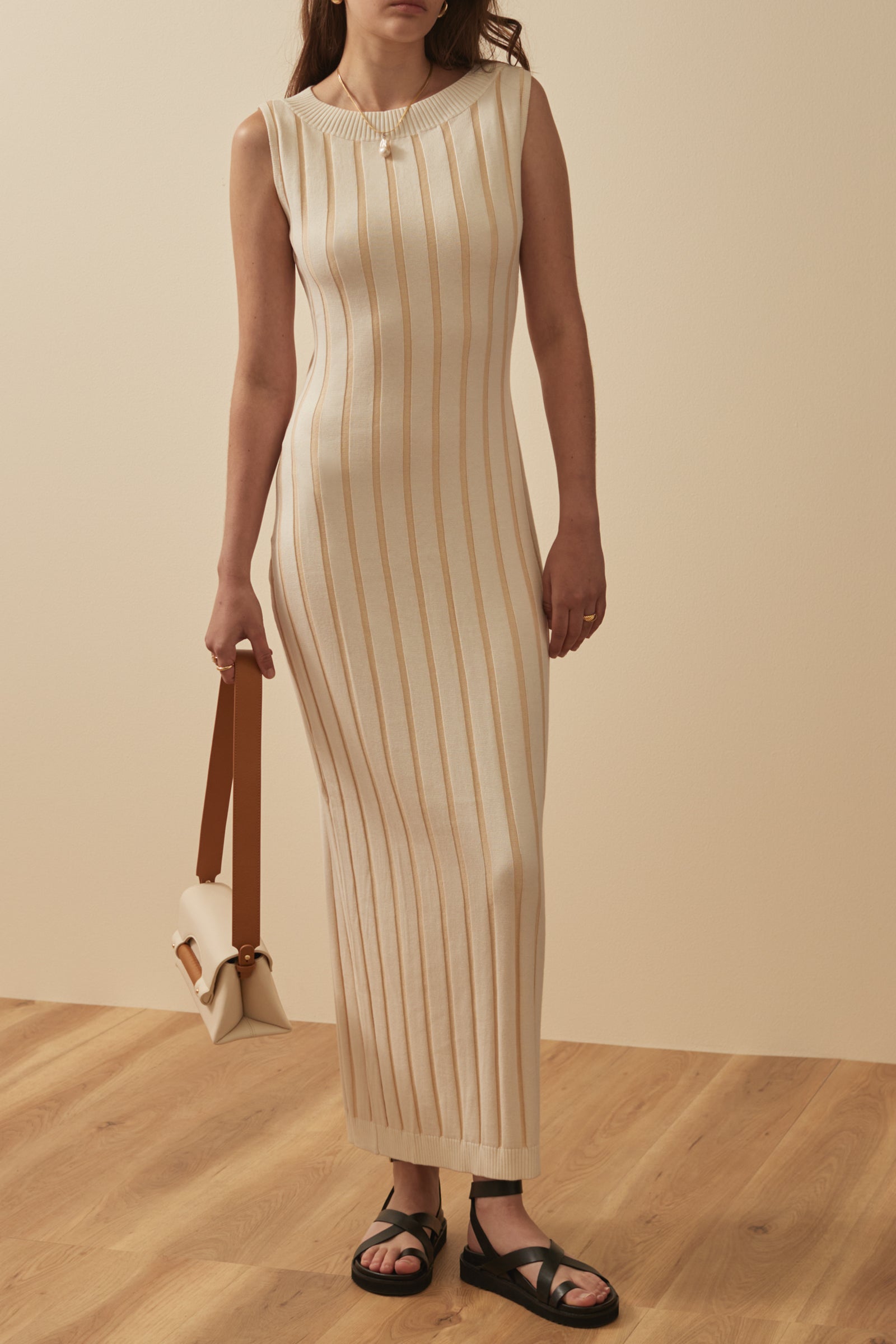 The Margot Dress is a modern wardrobe staple. Typically minimal, this knitted dress has clean lines and a streamlined silhouette that softly skims your body Style it for different occasions by switching your jewelry and accessories.